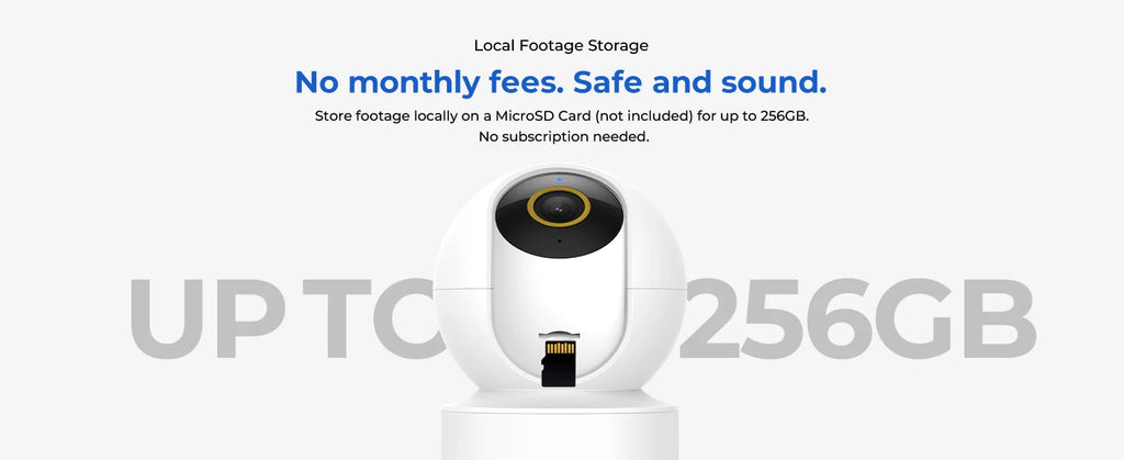 【Store It Your Way】Choose to store your footage on a MicroSD card (up to 256GB-card not included) or go cloud with our subscription-based storage (3-month free trial). Either way, your data is safe and secure with our encrypted transmission