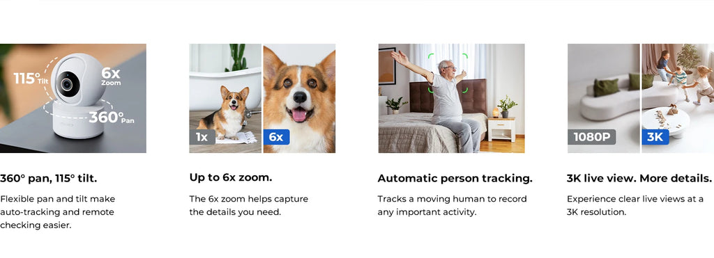 【Clear 3K Resolution】With an enhanced 3K resolution and wide dynamic range (WDR) mode, the C22 indoor camera delivers superior 3K image clarity. Experience uninterrupted viewing with a stable WiFi 6 connection, free from drops and delays